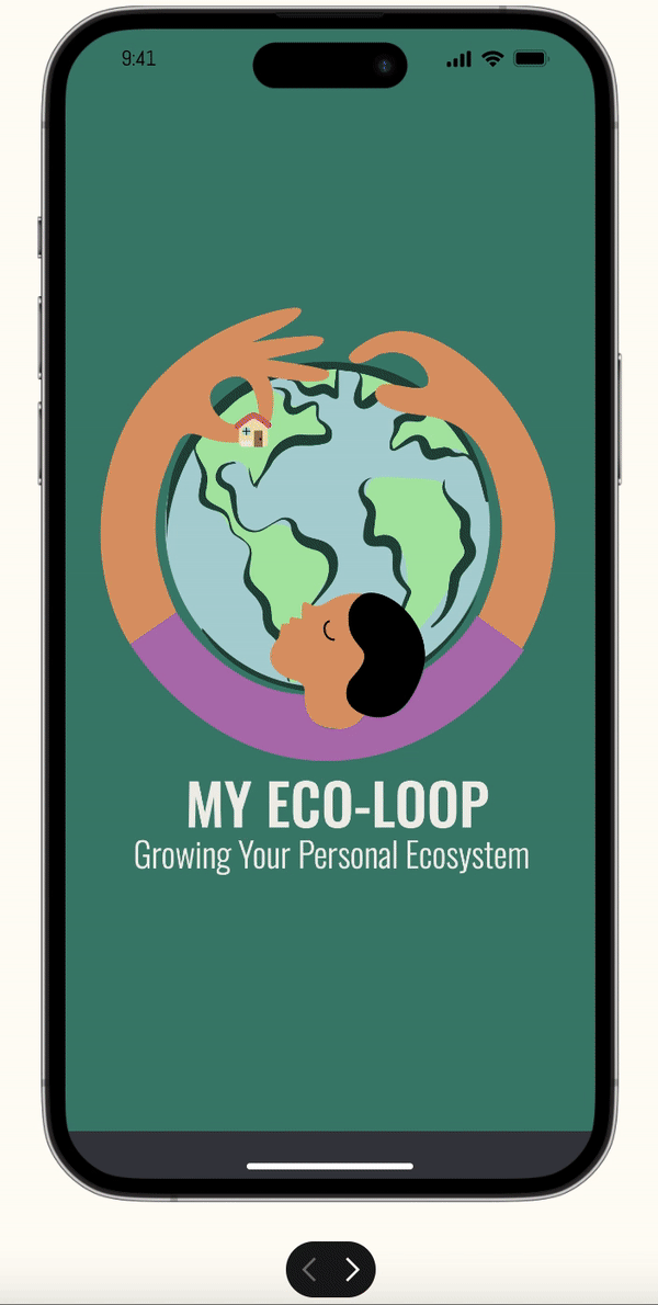 For the logo I designed, I wanted to make sure the app was immediately recognizable as a sustainability app. I also wanted to represent the element of the personalized ecosystem. The person hugging the earth is picking up their home to show that there is a bigger picture, but they are doing their part by focusing on themselves. The person in the logo was made to be nondescript so anyone could see themselves using the app no matter what gender, race or age.